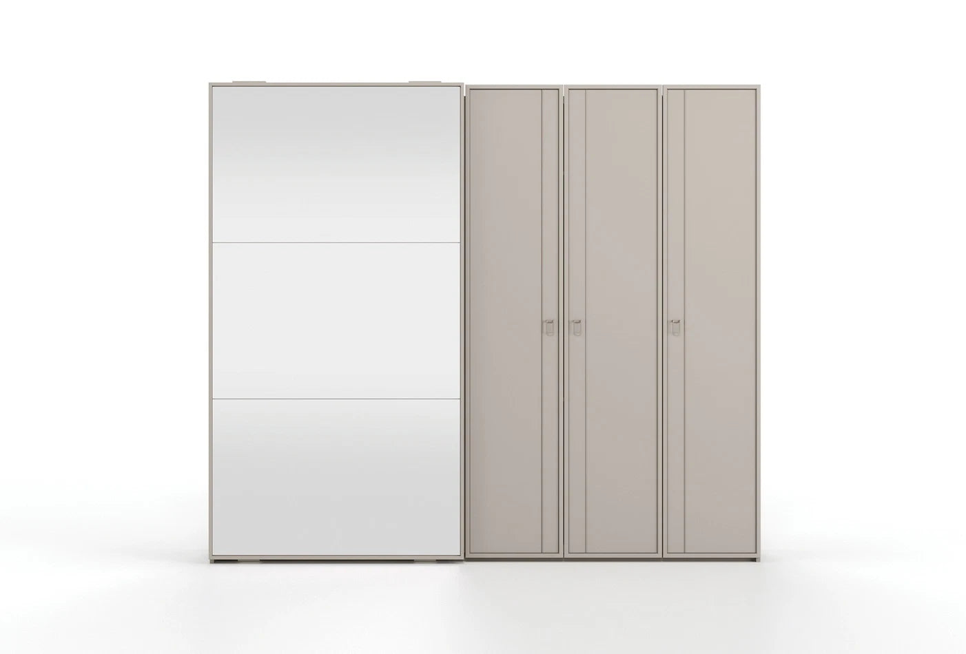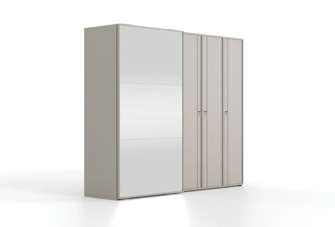 Гардероб HERA представлява идеалния синтез между елегантност и функционалност. Успокояващият камъчен нюанс на корпуса се хармонира перфектно с естествените огледални детайли, а луксозните метални дръжки в бронзов цвятдобавят съвременна изтънченост.