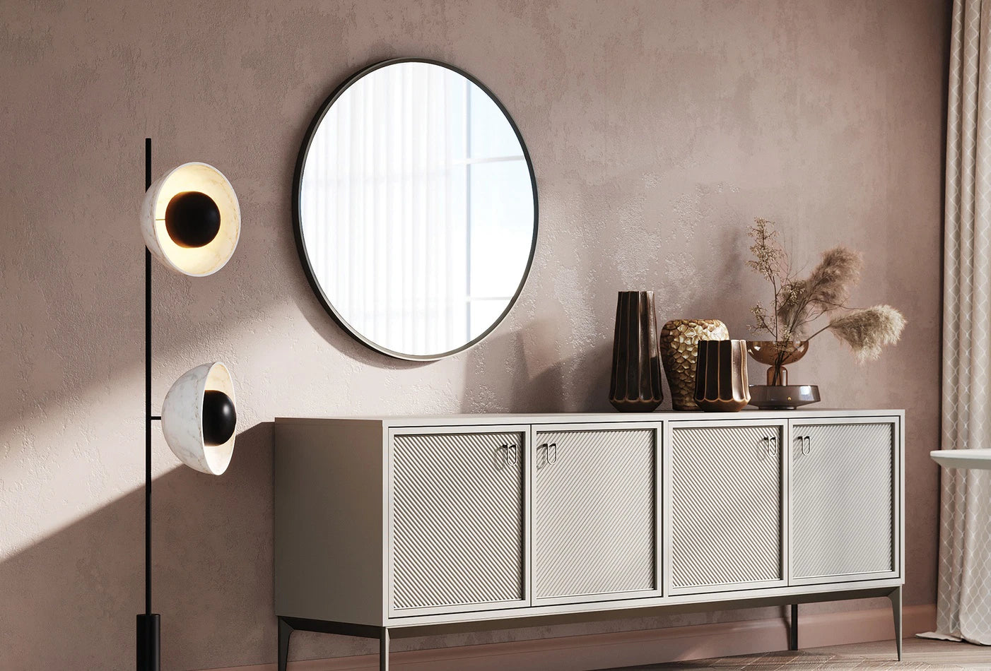 Огледалото HERA се отличава с елегантна кръгла форма и естествени цветови нюанси, които придават топлина и дълбочина на жилищното пространство. Минималистичните детайли съчетават стил и уют, превръщайки го в идеален акцент за всеки интериор.