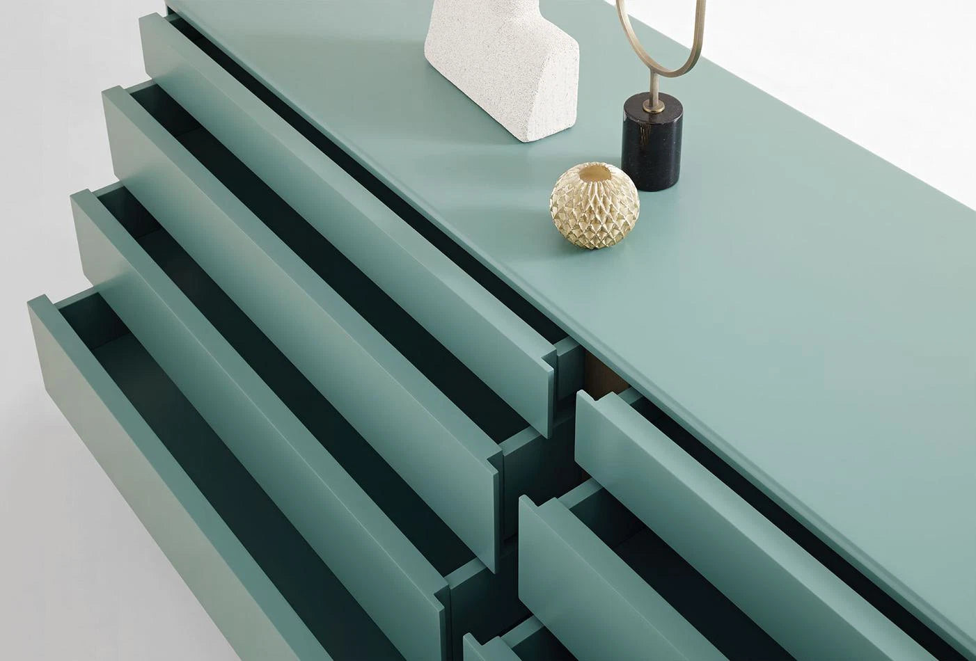 Предлага 8 чекмеджета с голямо пространство за съхранение.