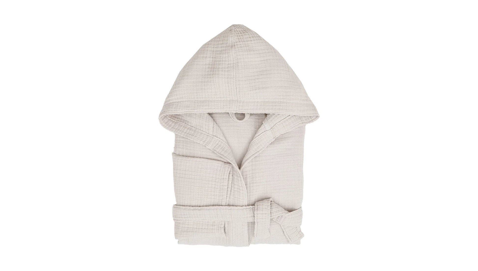 Халат с качулка Ernesta, комбинира абсорбирането на вода благодарене на памучната си материя с мека текстура. Осигурява комфортно носене както в банята, така и при ежедневна употреба.
