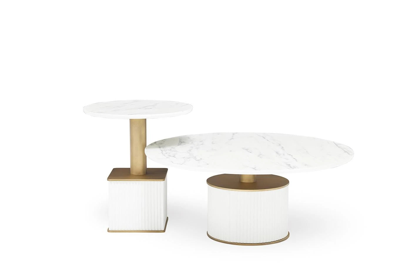 Внася съвременна интерпретация на декорацията с комбинацията от лакиран МДФ и метал и линейни дизайнерски детайли. С неутралната елегантност на светлосивата и бялата цветова комбинация тя се вписва идеално в модерните декоративни фикции.