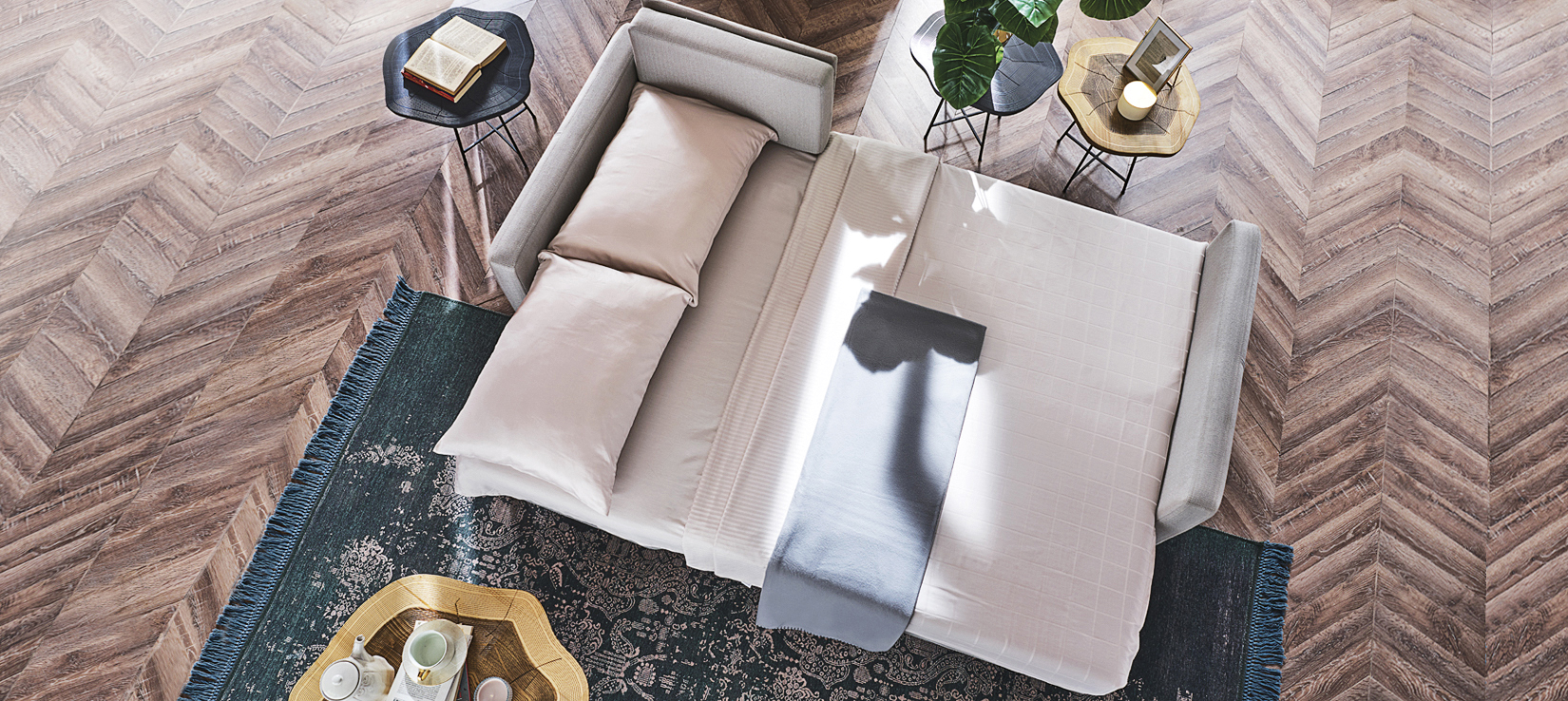 Добавяйки максимален комфорт към своя модерен дизайн се трансформира в голямо двойно легло със своя сгъваем механизъм, осигуряващ максимална адаптация и към най-тесните пространства. Със своята интелигентна зона за съхранение и структура с високи крака, реализира интериорни декорации без граници, придружени от гъвкави и креативни приложения.
